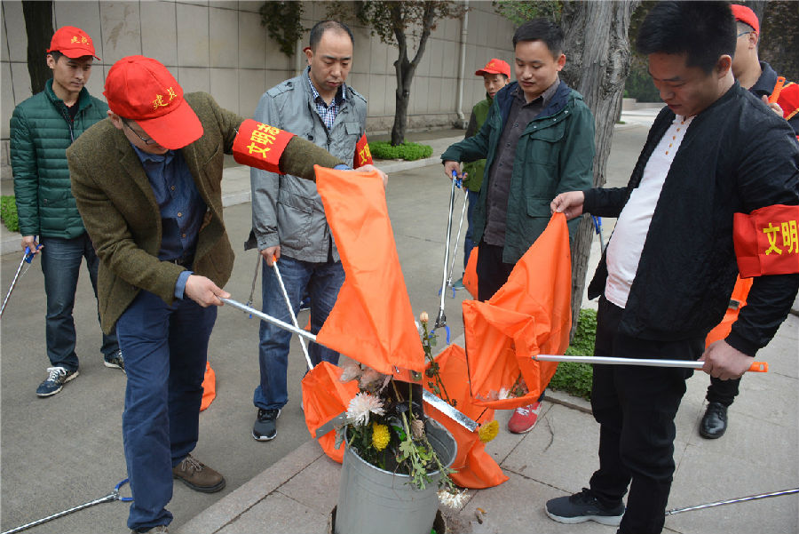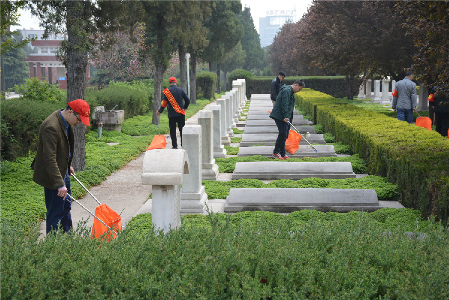 三、開展“倡議文明緬懷,減少廢棄污染”拾撿垃圾志愿服務活動。緬懷先烈活動結束后,市建投公司志愿者們在烈士陵園內開展“倡議文明緬懷,減少廢棄污染”拾撿垃圾志愿服務活動。每位志愿者都手持垃圾鉗,認真將散落在紀念碑前以及隱藏在雜草中的廢棄鮮花、飲料瓶、紙張等垃圾拾撿起來放入提前準備好的垃圾袋中?;顒映掷m(xù)一個小時,志愿者們在祭奠先烈的同時以自己的實際行動表達崇敬之情,并倡導以獻一束花、敬一杯酒、植一棵樹、清掃墓碑等方式寄托哀思,將祭拜逝者的傳統(tǒng)習俗以更加環(huán)保、健康、安全、文明的方式表達,營造文明祭祀的良好氛圍。